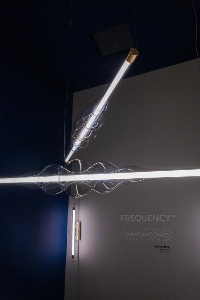 The FREQUENCY collection designed by Marcantonio last year has grown! During Euroluce, a wall-mounted version and a new size of pendant lamp were introduced. As the designer explains: "FREQUENCY was born from the desire to exalt the essence of light. I imagined a beam of light traveling through space. I wanted the shape of the glass to convey the movement and intensity of the energy released by this ray. A contemporary lamp that celebrates the art of hand-worked glass like only a sculpture can."